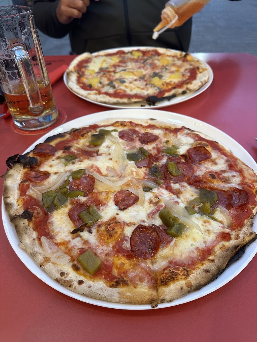 After reading some negative reviews, I was worried that the customer service was going to be terrible. Everything was brilliant. The restaurant was almost full. I ordered medium beer, it was Estrella, a good quality beer, and the glass appeared out of the freezer. Ordered the Calabrese, came out thin pan and cooked to perfection not goey in the middle but crispy. It's very tasty. I'll be back!